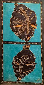 [[File:African masks by Jason J Mulikita.jpg|thumb|left|150px|2004 African masks painting by Jason J Mulikita]] | |||
